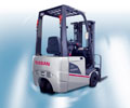 Parking brake with lock release button. The Nissan AC TECH controller continuously monitors and communicates the forklift’s truck status such as travel speed and steering wheel angle through the instrument panel. The five function keys can be used to adjust the truck’s performance to ensure the safest operating parameters according to operator experience and the load or handling conditions.
